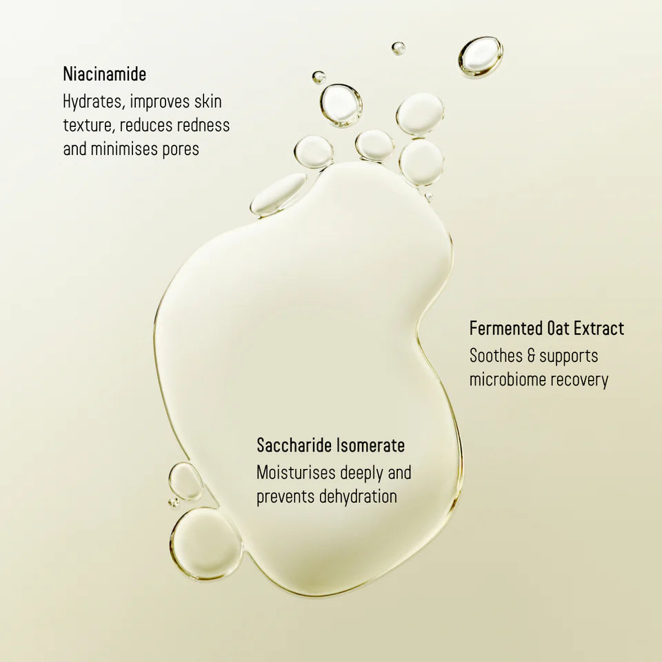 SUPREME SERUM :Kraftmikið serum sem er hannað til að endurheimta raka í húðinni og gerir hana mjúka, slétta og nærða. Bætt með níasínamíði og gerjuðum höfrum. Þessi kraftmikla blanda gefur djúpan og langvarandi raka.