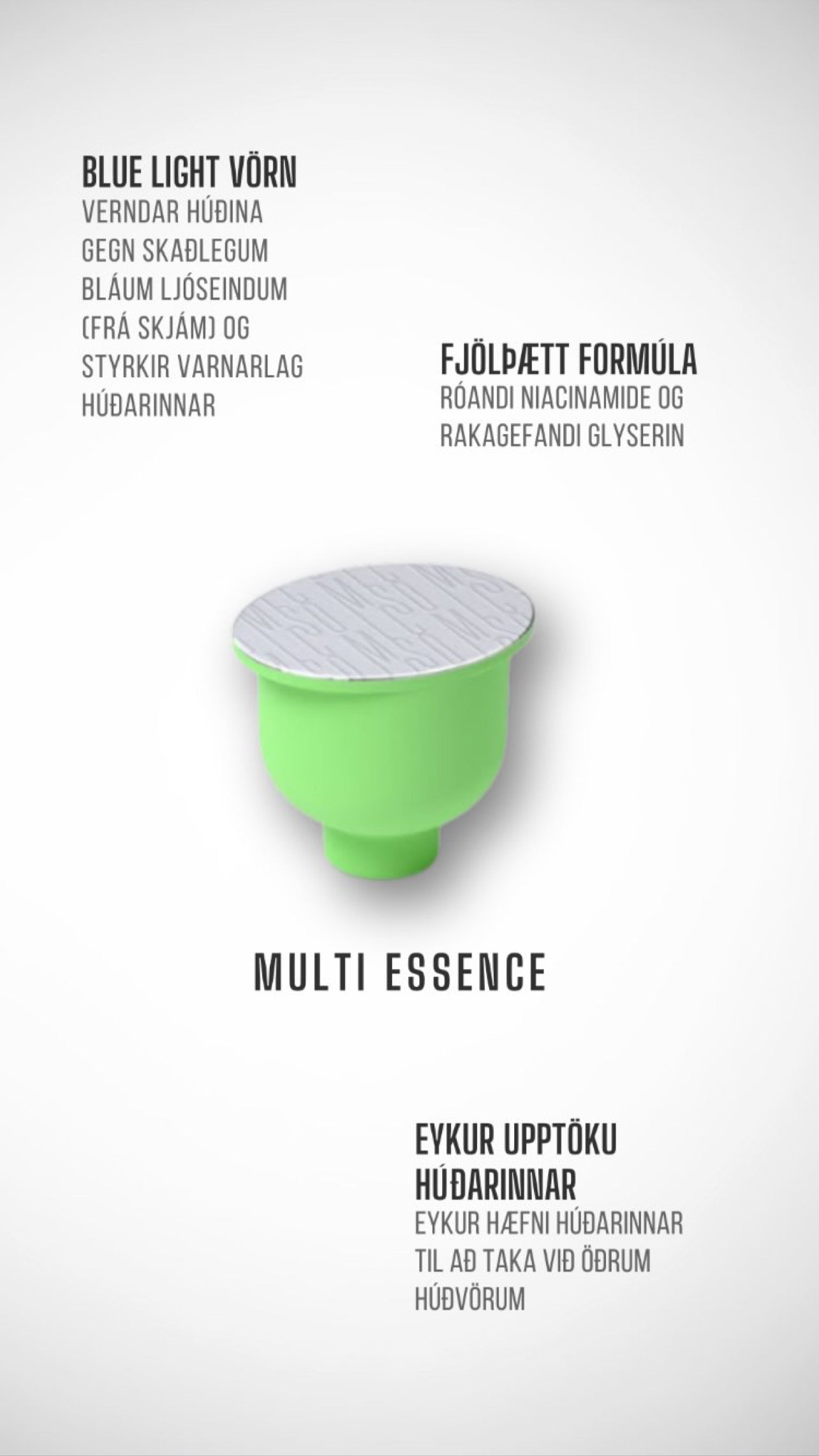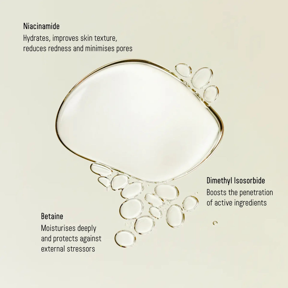 Fjölnota vökvi sem nærir, róar og verndar gegn bláu ljósi. Inniheldur niacimid og glyserin til að bæta sléttleika og styrkja húðina, hjálpar húðinni að frásoga aðrar vörur enn betur.