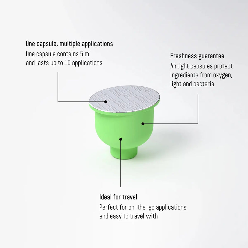Hylkin vernda innihaldsefni gegn súrefni, ljósi og bakteríum, sem tryggir ferskleika og virkni allt að því augnabliki sem þau snerta húðina.