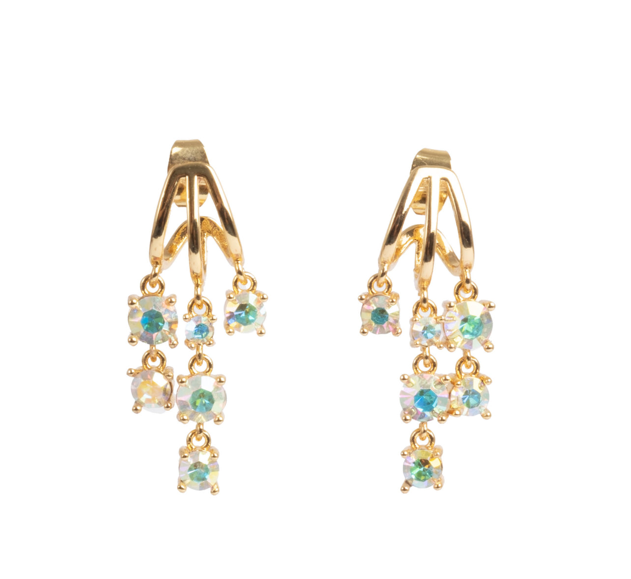 Butterflies trippel hoop med en sverm av glitrende steiner med AB effekt som skinner i nydelige pastelltoner. Disse gir definitivt antrekket det lille ekstra! Tone Damli by A&C Oslo, en smykkekolleksjon som oser av femininitet, lekenhet og eleganse. Høy kvalitet, laget i begrenset antall.