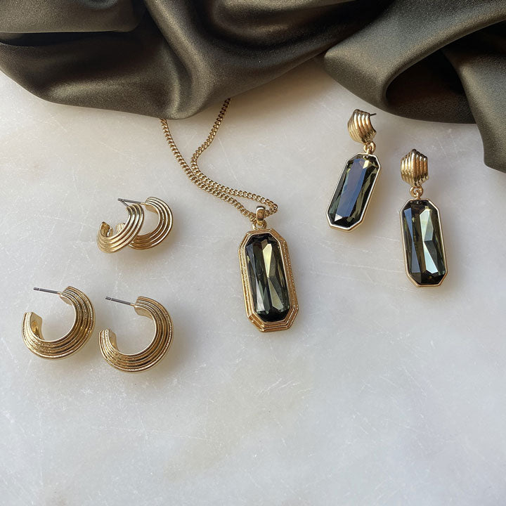 Grace er en kolleksjon inspirert av 80- og 90-tallets lekne og modernistiske festsmykker – med en moderne vri. Fasettert glass i delikate fargekombinasjoner og teksturerte detaljer gir smykkene karakter, enten du styler dem til hverdag eller fest. Kolleksjonen inkluderer også enkle, teksturerte basic-øreringer som passer til alt. Belagt med ekte gull – for et uttrykk som varer.