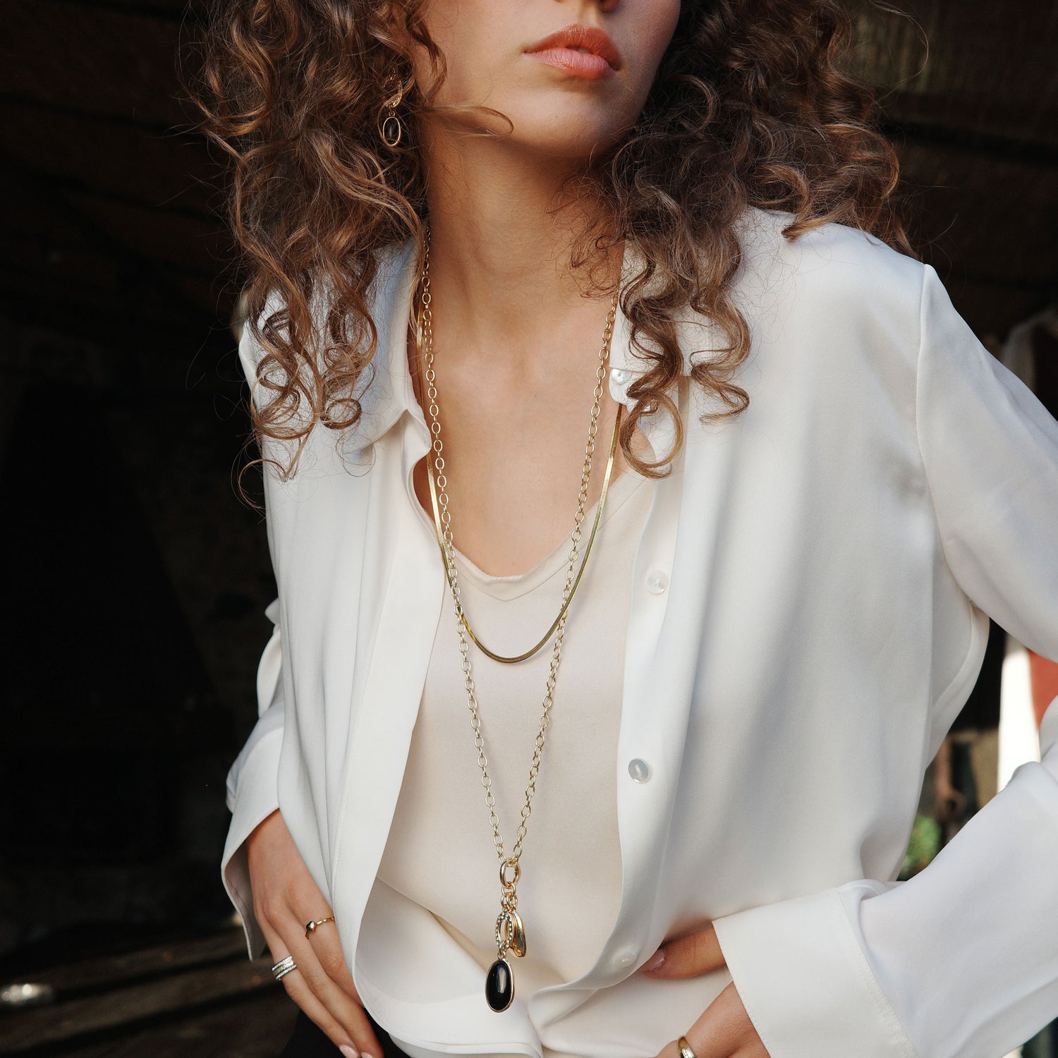 Hálsmen | Liquid | Sítt | Svartur steinn