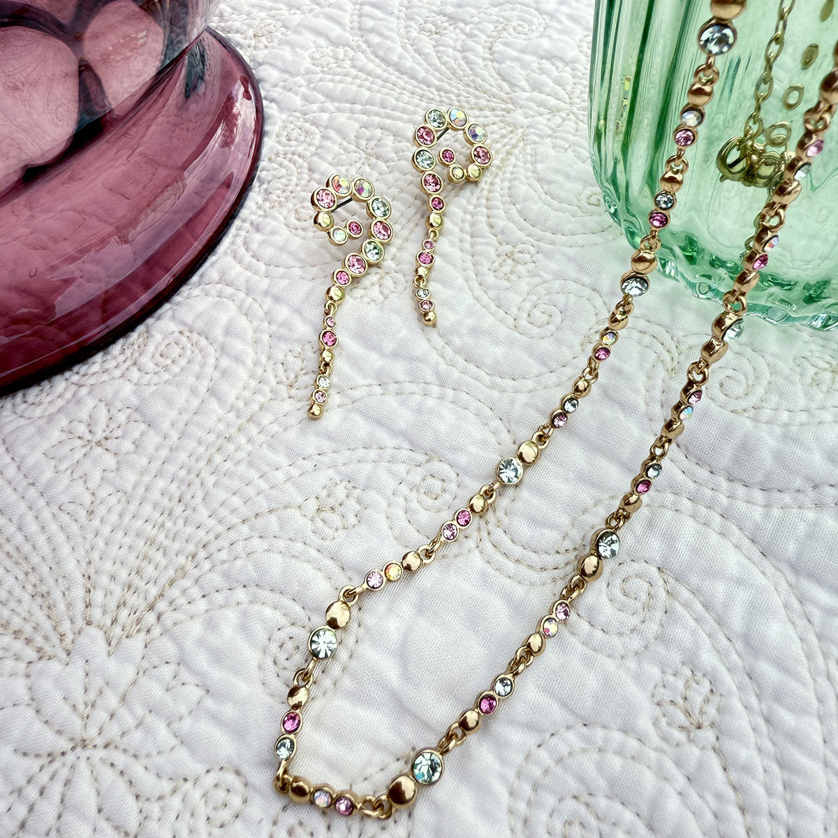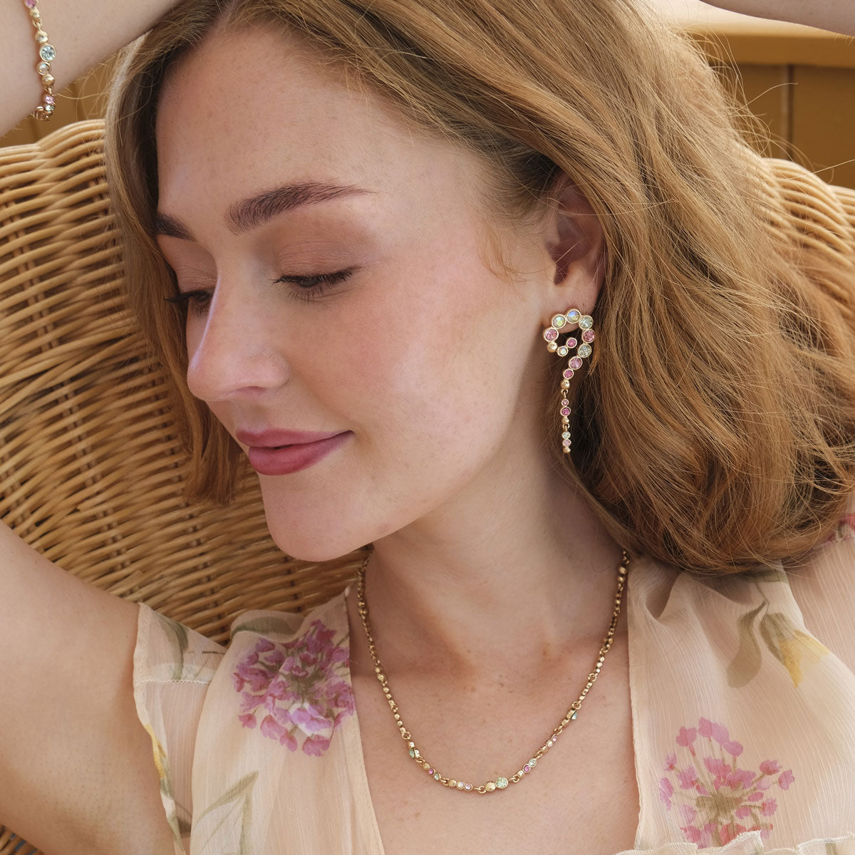 Sweet Droplets kombinerer glitrende krystaller og små metalldråper i en delikat balanse som gir et feminint og tidløst uttrykk. Smykkene er belagt med ekte gull eller sølv for en varig, eksklusiv finish – perfekte til å løfte hverdagslooken eller som et elegant tilbehør til fest. Laget for å skinne, uansett anledning.