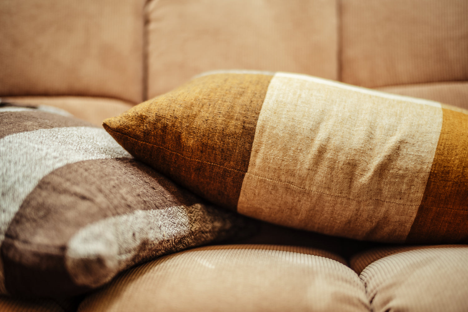 Create the ultimate retro bungalow feel in your home. The laid-back comfort and nostalgic chequered prints make this woven cushion range so popular and timeless. The warm colours and soft 100% linen coverings add a welcoming touch to any seating area.