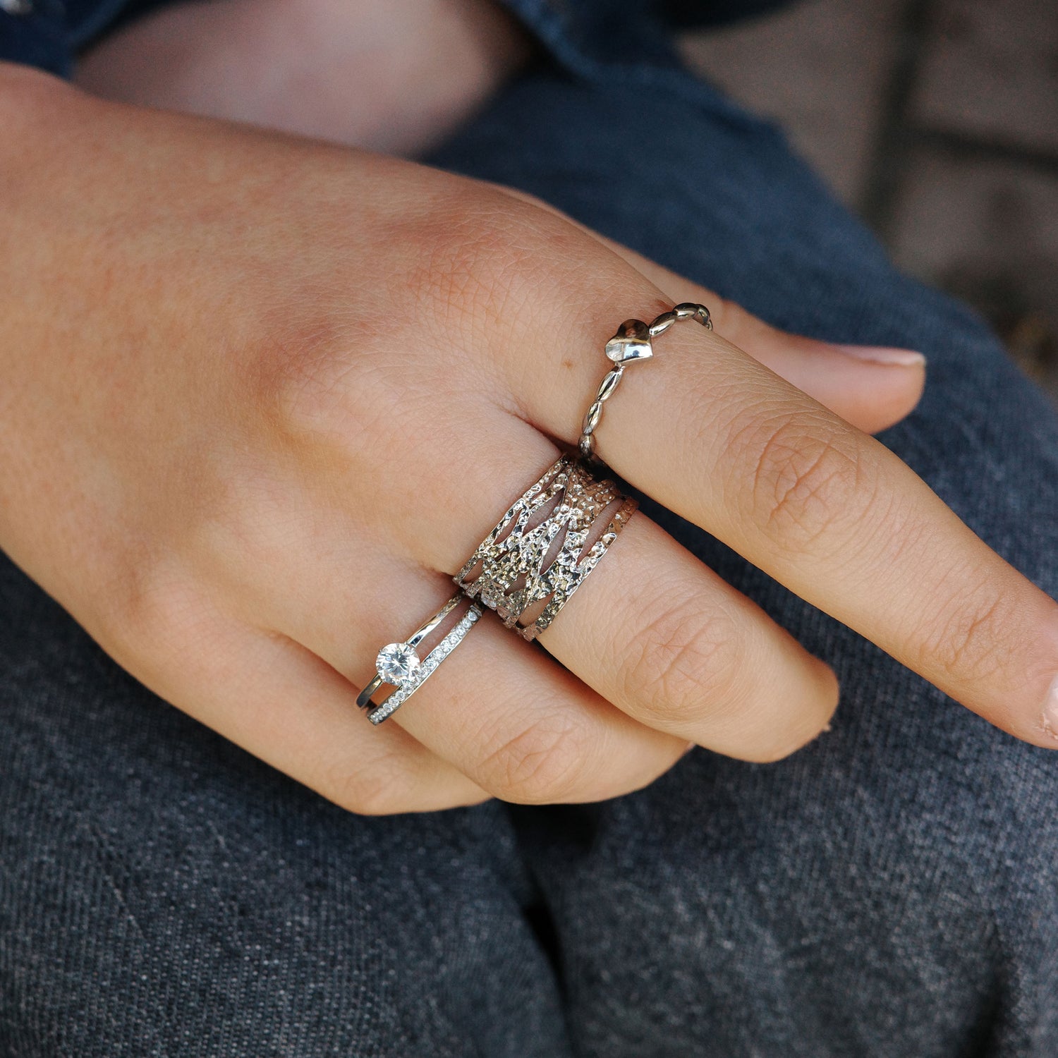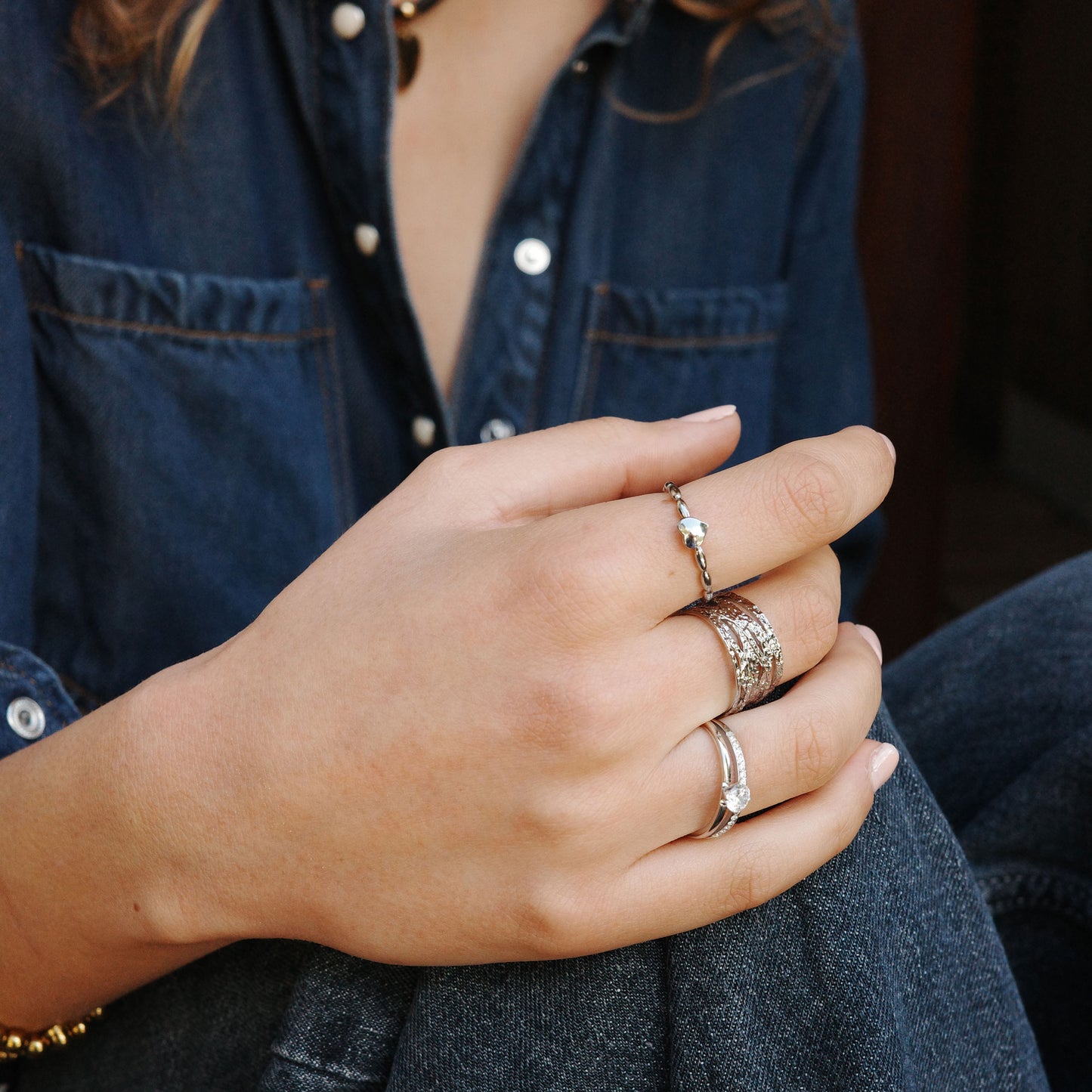 Søt ring med et lite hjerte. Et tilskudd til ringsamlingen, som også egner seg godt til stacking. Ringen er dessiuten en søt gave til en du er glad i. MERK: Mens vi venter på størrelsevelger ber vi deg sende en e-post med ønsket ringstørrelse ved bestilling. Send til web@ac.no. Hvis vi ikke hører fra deg sender vi str 56 (medium).