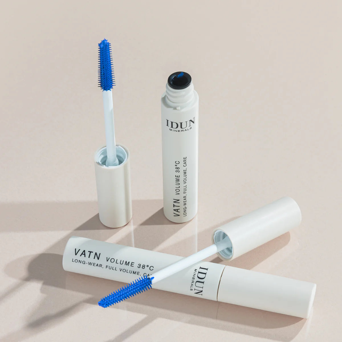 IDUN Minerals Mascara Vatn Volume gefur strax aukna þykkt án kekkja, sem gerir kleift að byggja upp augnhárinn og gefur aukna þykkt.