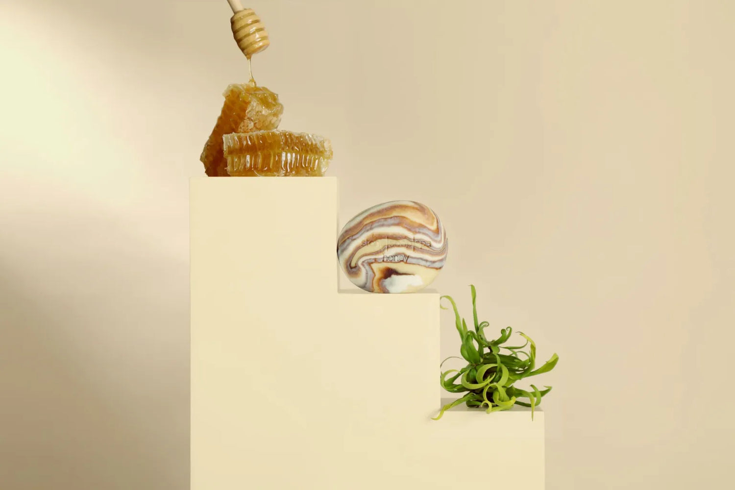 Upplifðu lúxus og afslappandi vellíðunarupplifun með hunangssápunni okkar. Þessi náttúrulega sápa er búin til af alúð til að gefa þér vellíðan á algjörlega náttúrulegan hátt. Einstök samsetning náttúrulegra innihaldsefna, þar á meðal hunangs, kókosolíu, hrísgrjónaklíðolíu og sesamolíu, nærir og mýkir húðina á meðan hún skilur eftir geislandi glans og ljóma.